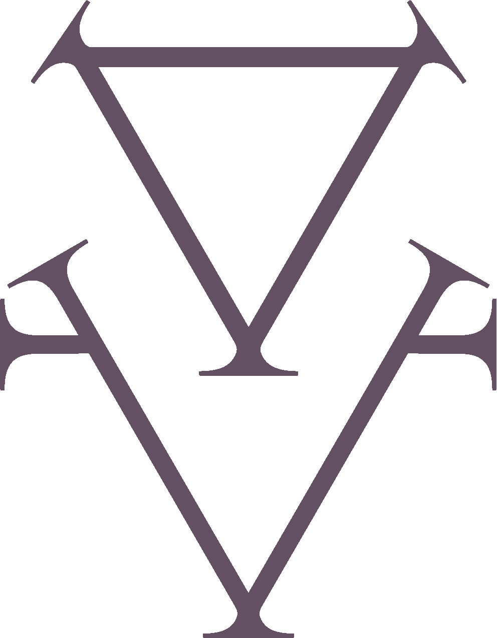 There priestesses in purple robes hold each